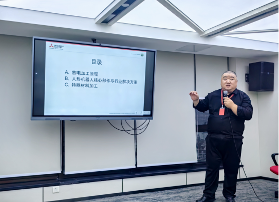 三菱电机自动化(中国)有限公司吴宇东介绍三菱放电加工机在电机模行业解决方案、泛用塑料模具解决方案、人形机器人核心部件与行业解决方案和特殊材料加工方面等应用情况。